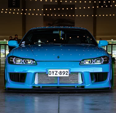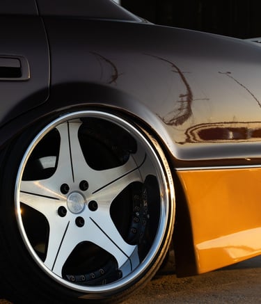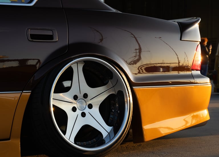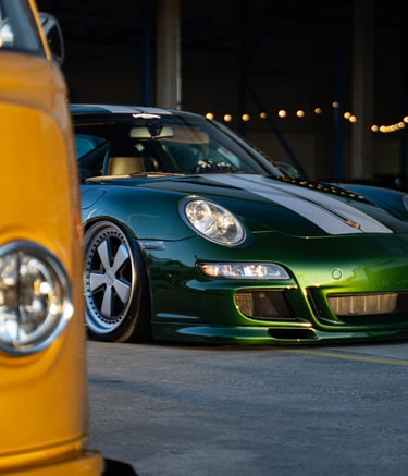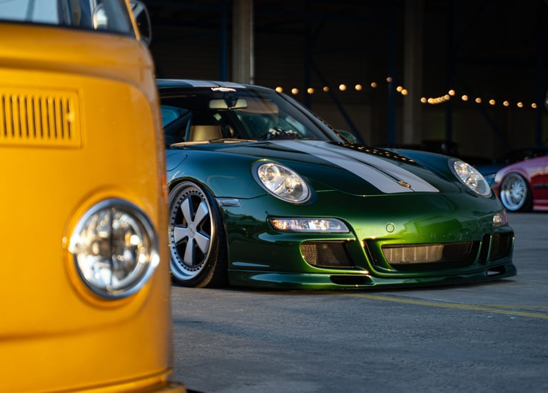 Dynamic angles capturing car details and motion.